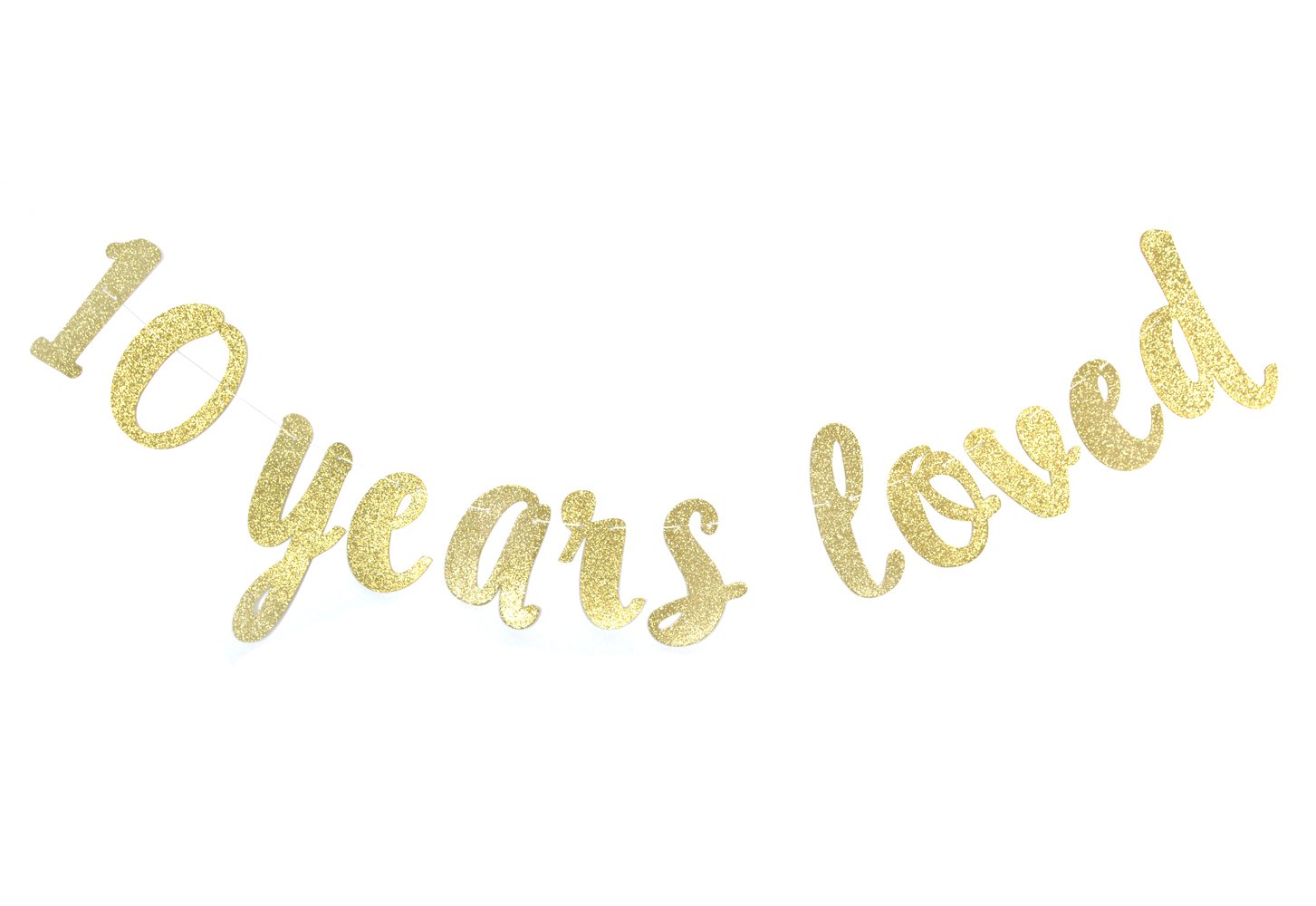 10 Years Loved Gold Glitter Banner For Happy 10th Birthday Wedding