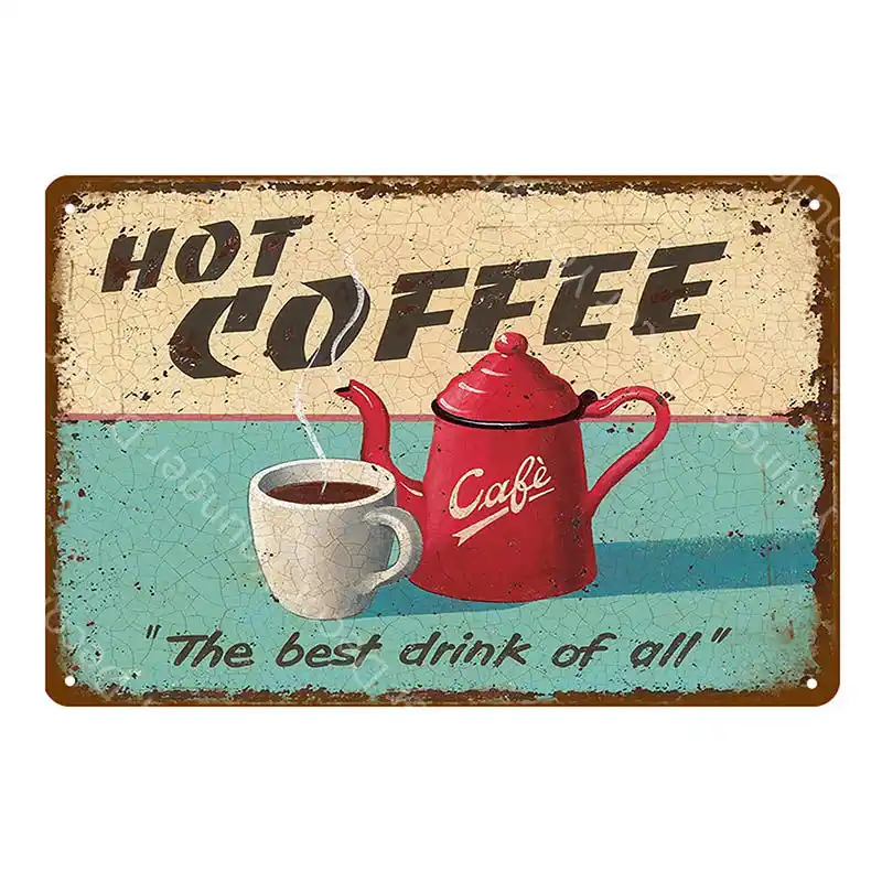 Hot Coffee Signs Sweet Tea Poster American Diner Caffeine Cafe