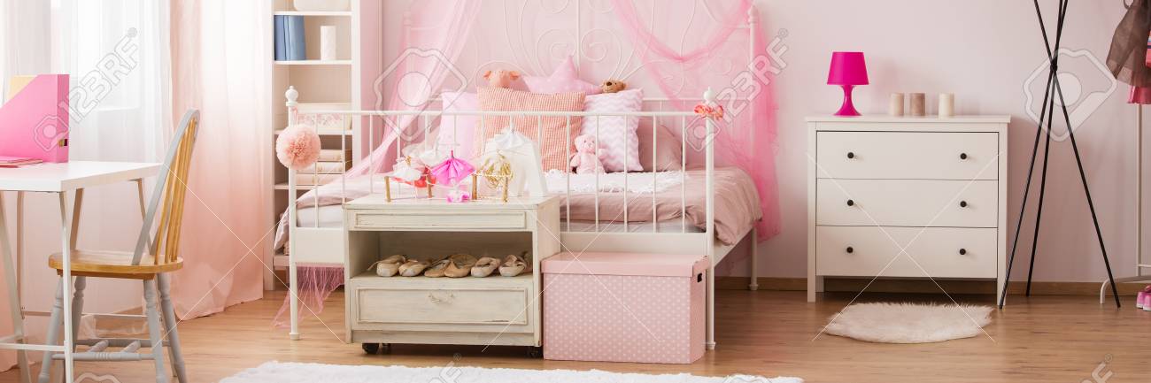 Girl S Dreamy Pink And White Bedroom Decor With Ballet Shoes