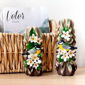 Carved Candles With Small Birds Exclusive Handmade Decorative