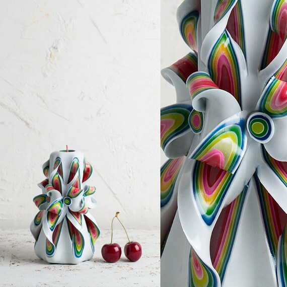 Big White Rainbow Candle Carved Candles Decorative Candles Etsy