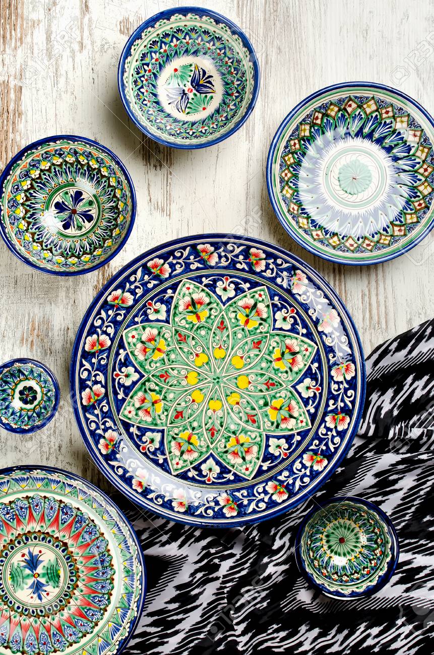 Ethnic Uzbek Ceramic Tableware Decorative Ceramic Cups And Plates