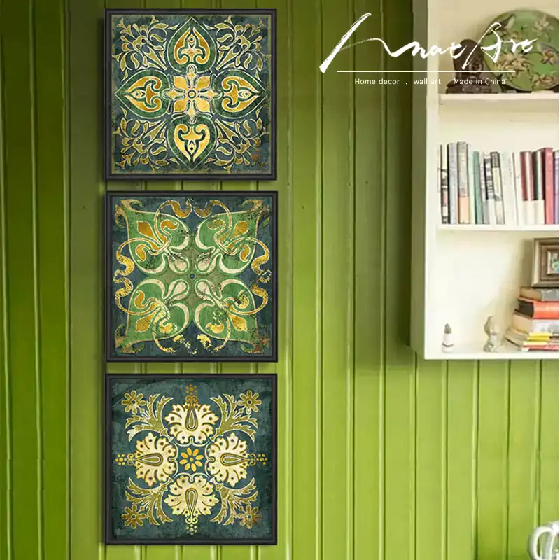 Emerald Indian National Pattern Retro 3 Piece Canvas Wall Art Home