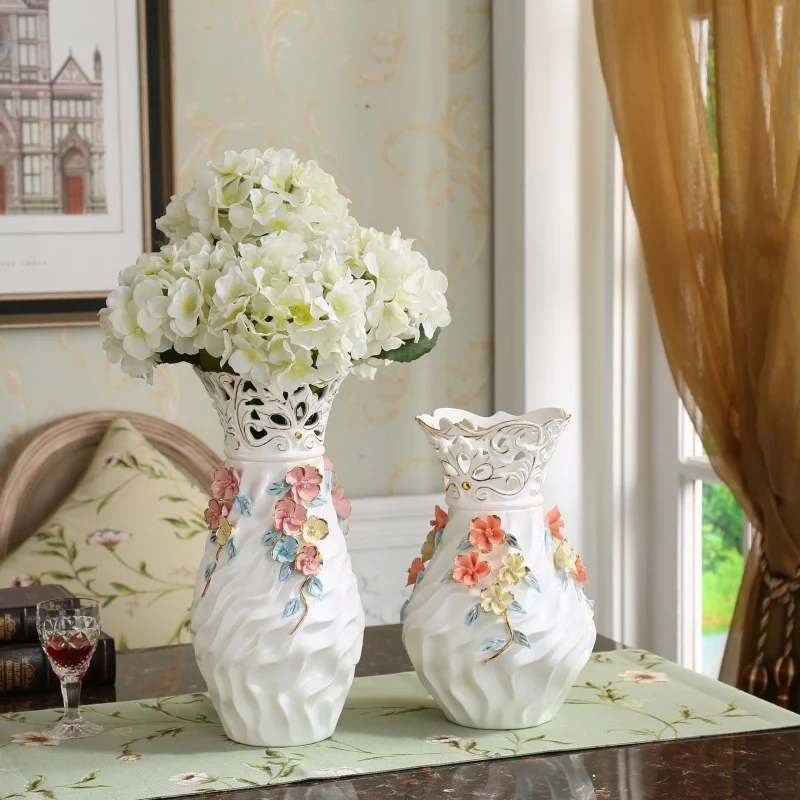 Hollow Emboss Flowers Vase White Ceramic Home Decor Large Floor