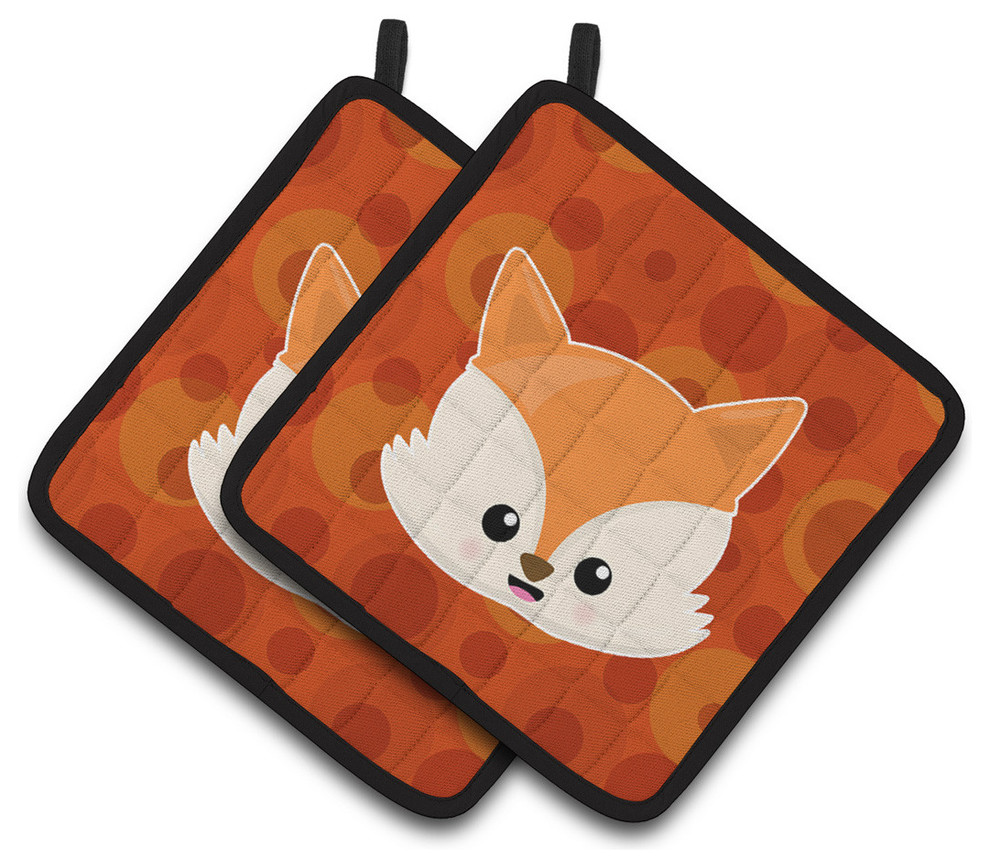 Baby Fox Face Polkadots Pot Holders Set Of 2 Contemporary