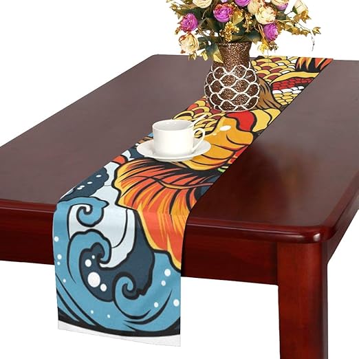 Amazon Com Hand Drawn Koi Fish Circle Japanese Table Runner