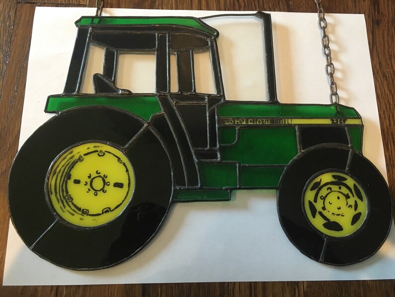 Handmade Stained Glass John Deere Tractor Home Decor Etsy