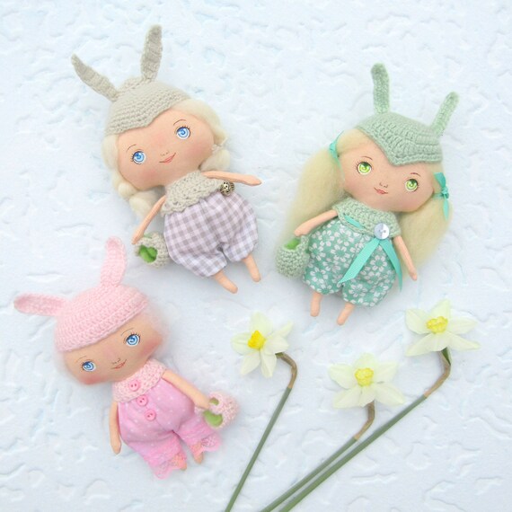 Kawaii Plush Bunny Rag Doll Handmade Textile Bunny Toy Mini Etsy