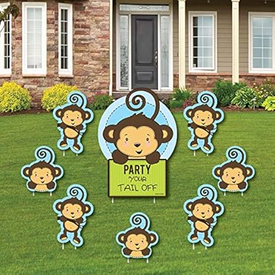 Blue Monkey Boy Yard Sign Outdoor Lawn Decorations Baby