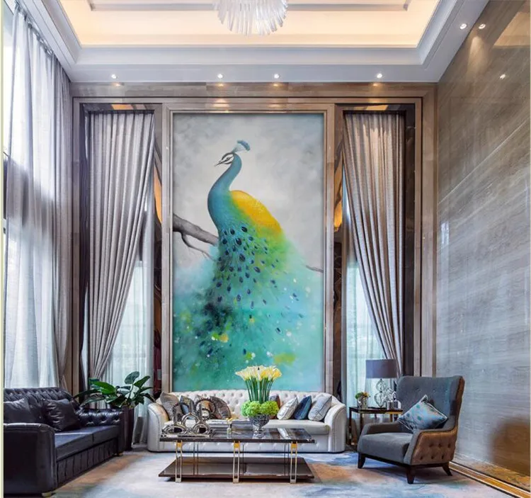 3d Peacock Wall Mural Printed Photo Wallpaper Large Size For Tv