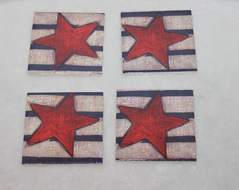 Rustic Primitive Star Ceramic Tile Drink Coastersstar Etsy