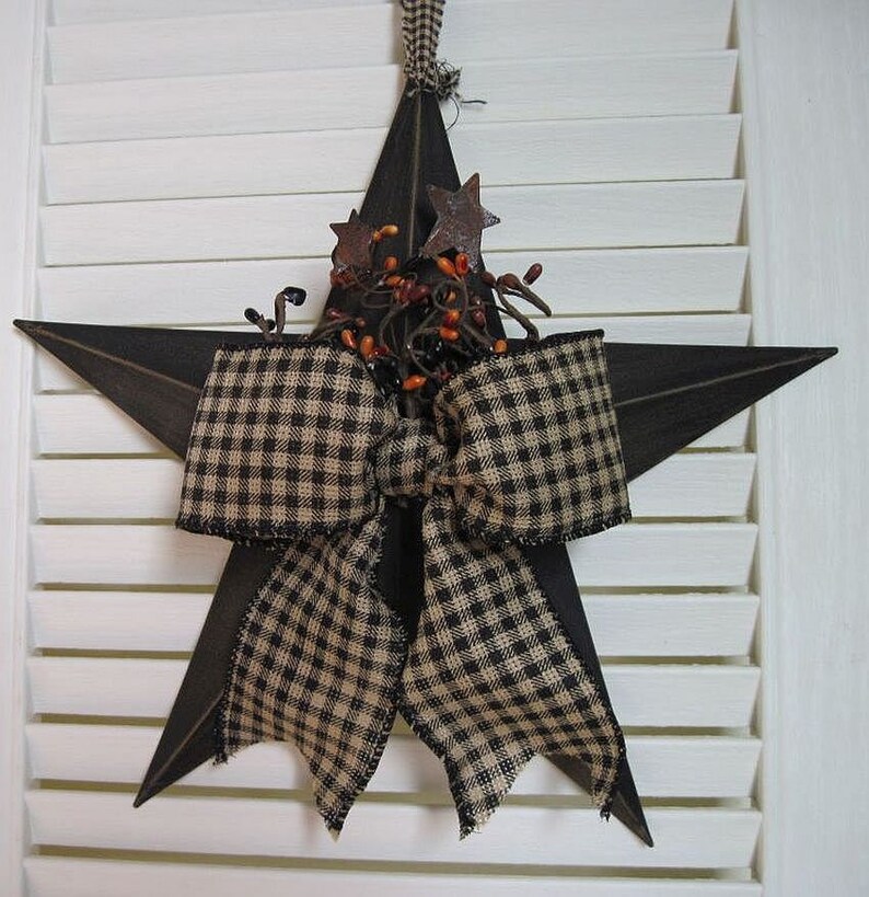 Country Primitive Star Decor Black Metal Star Pip Berries Etsy