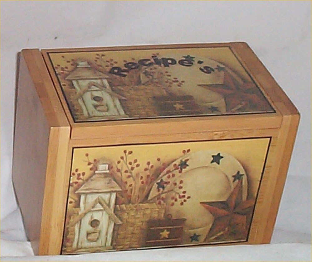 Amazon Com Wood Recipe Box Bamboo Primitive Star Kitchen Decor