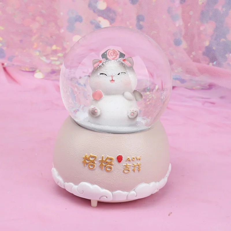 Royal Cat Snow Globe Crystal Ball Rotating Christmas Music Box