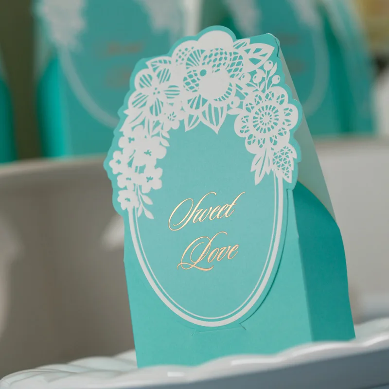 50pcs Color Luxury Tiffany Blue Wedding Candy Box Wedding