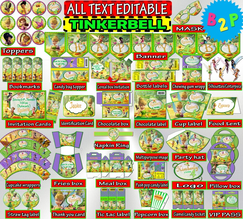 Tinkerbell Printable Party Package Printable Birthday Items Diy