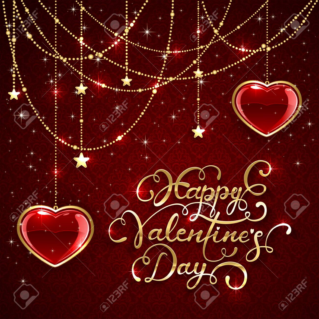 Valentines Decorations With Glittering Hearts And Golden Stars