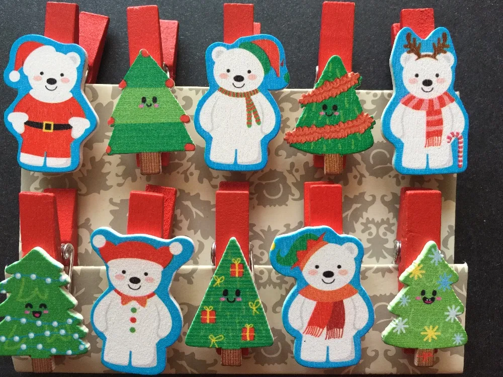 120pcs Mini Christmas Wood Clips Wood Clothespin Clips Postcard