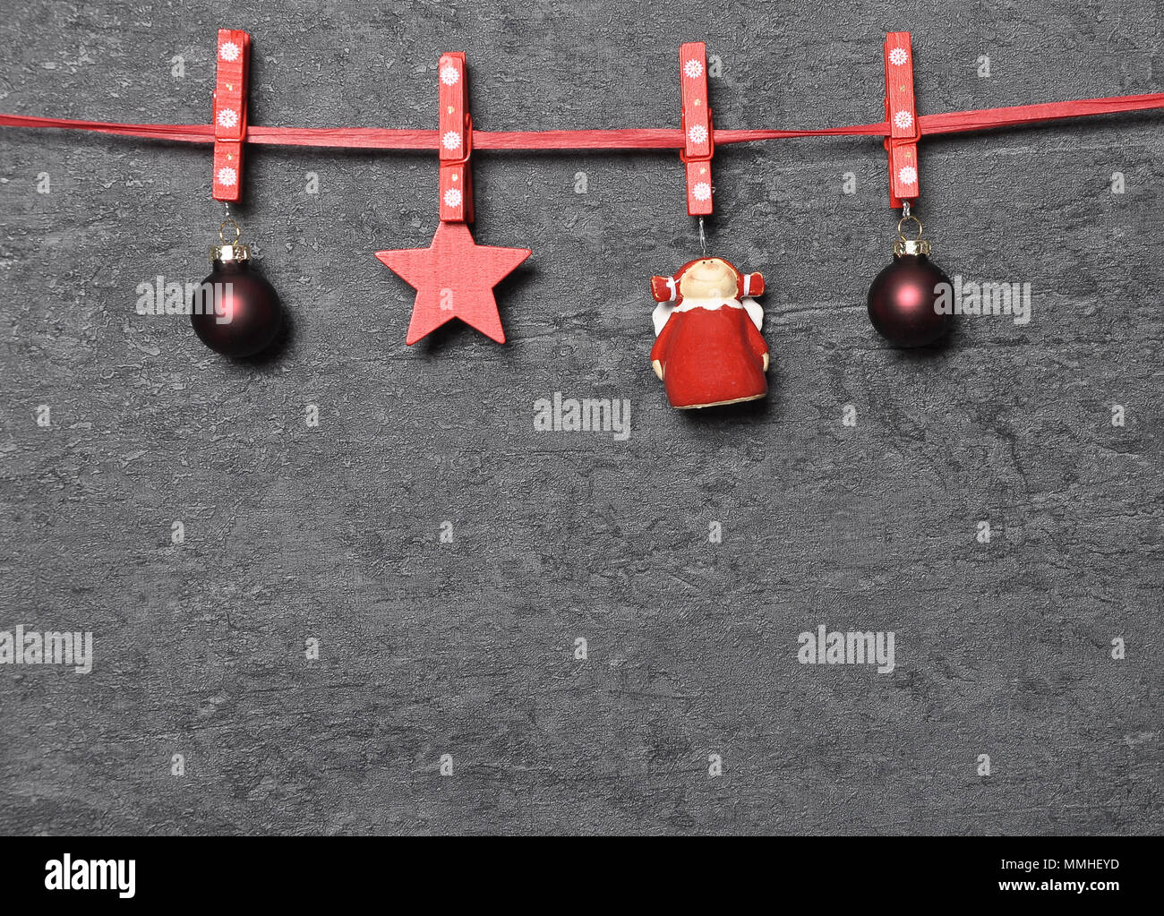 Background With Christmas Tree Decorations And Wooden Pegs Stock