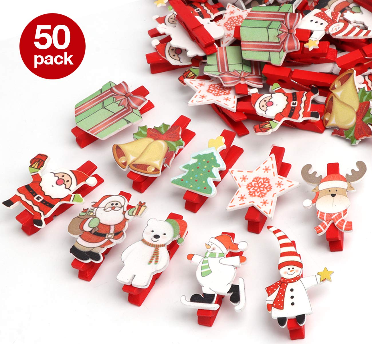 50pcs Christmas Pattern Mini Wooden Pegs Santa Wooden Crafts Pegs
