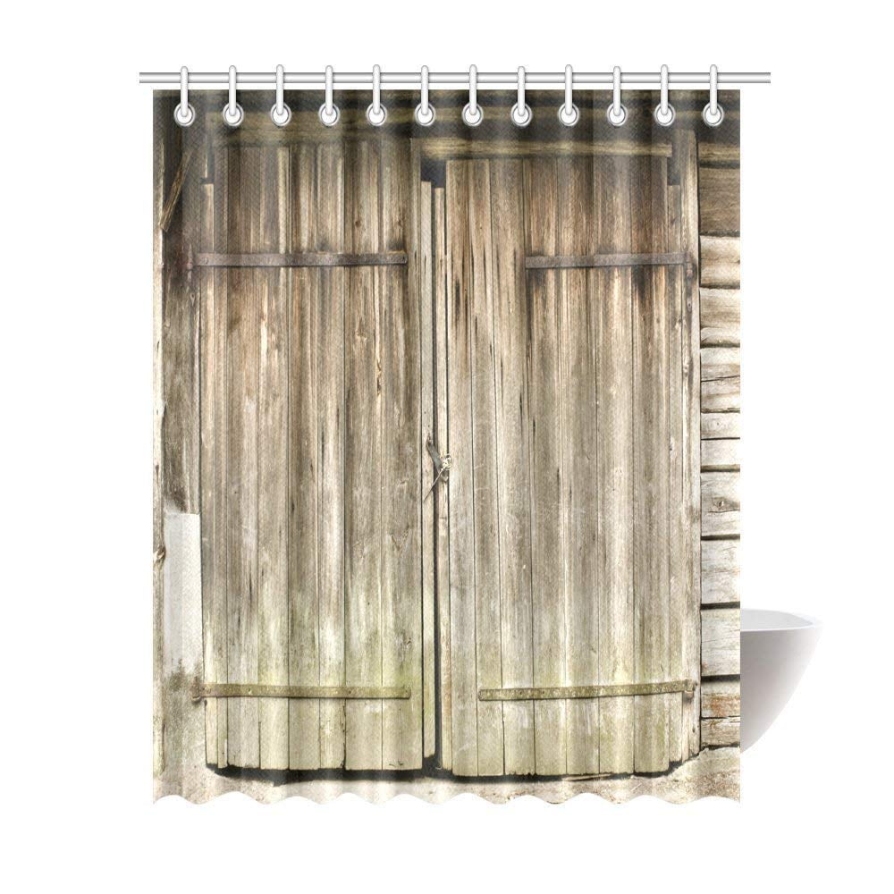 Gckg Rustic Door Decor Shower Curtain Vintage Dilapidated Brown