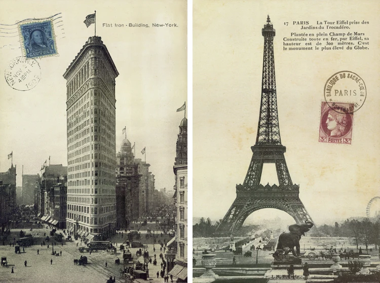 Eiffel Tower And Flatiron Building Postcard Canvas Frameless