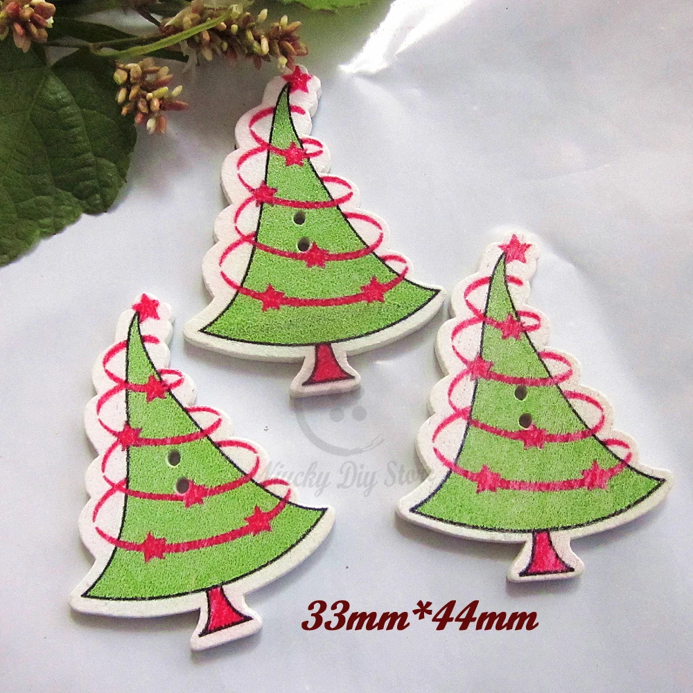 50pcs Wood Christmas Trees Buttons Christmas New Year Decorative