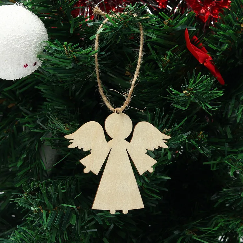 10pcs Lot Plywood Wooden Angel Shape Christmas Tree Decorations