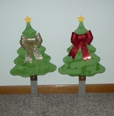 Christmas Tree With Gold Or Red Glitter Bow Yard Art Outdoor