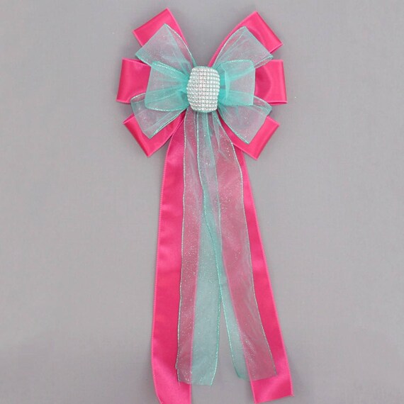 Fuchsia Aqua Bling Wedding Pew Bow Church Pew Decorations Etsy