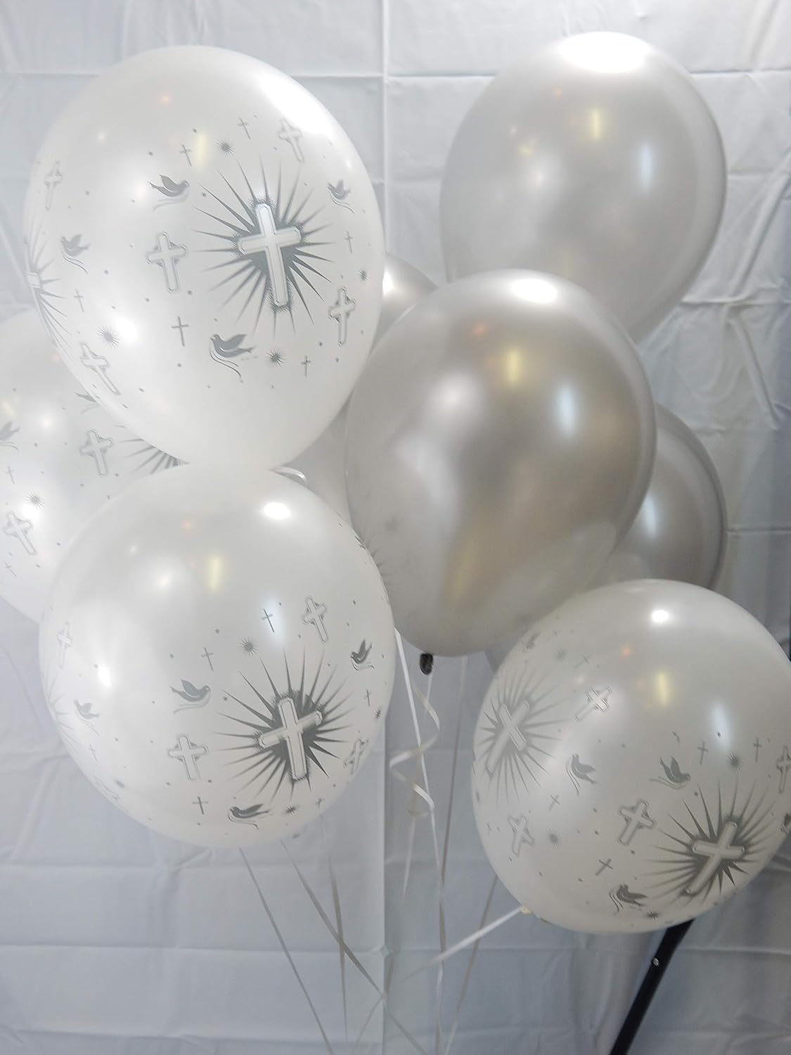 Best Price 15 Silver Doves Cross Latex Balloons Baptism