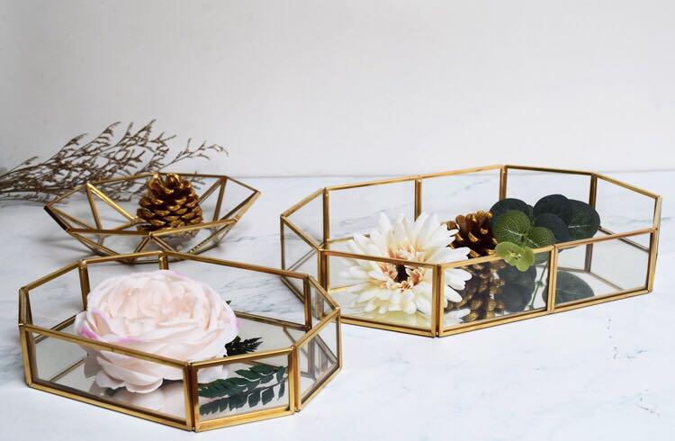 Arrange them on top of a wood or iron serving tray to provide contrast and highlight other copper decor elements in your home.
