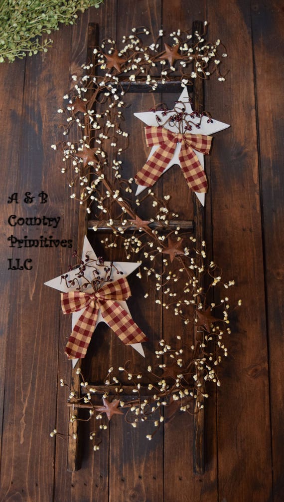 Country Ladder With Berry Garland And Primitive Wooden Stars Etsy