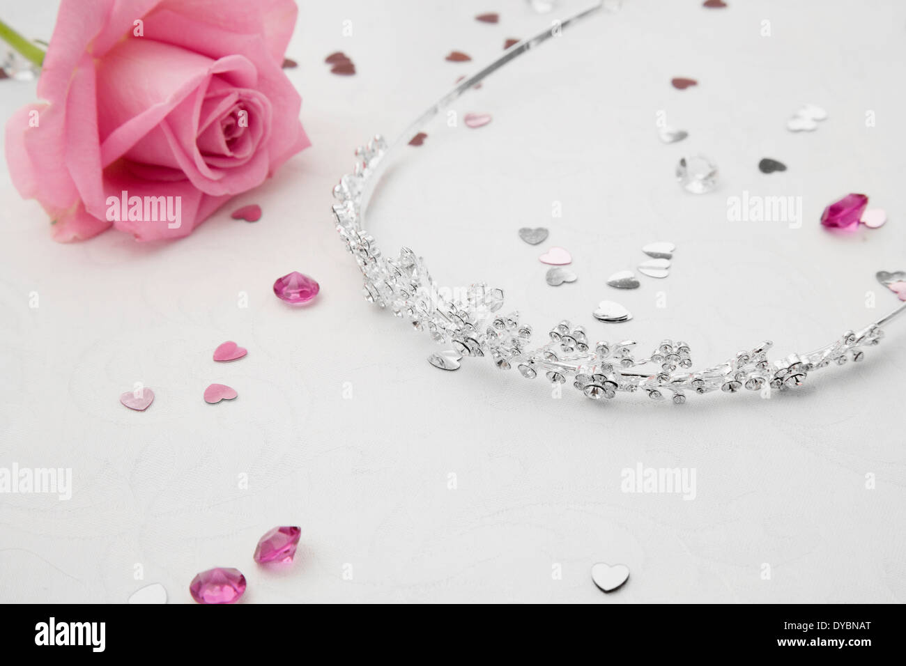 Brides Wedding Crown And Pink Rose With Wedding Table Decorations