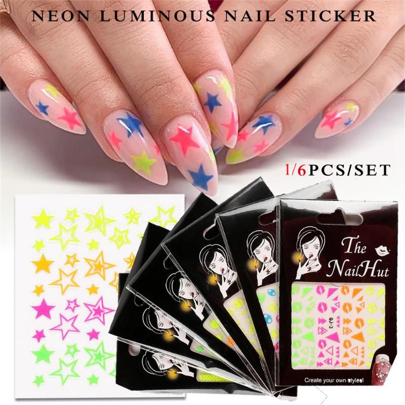 1 3d Stars Splatter Neon Luminous Adhesive Sticker Decal Glitter