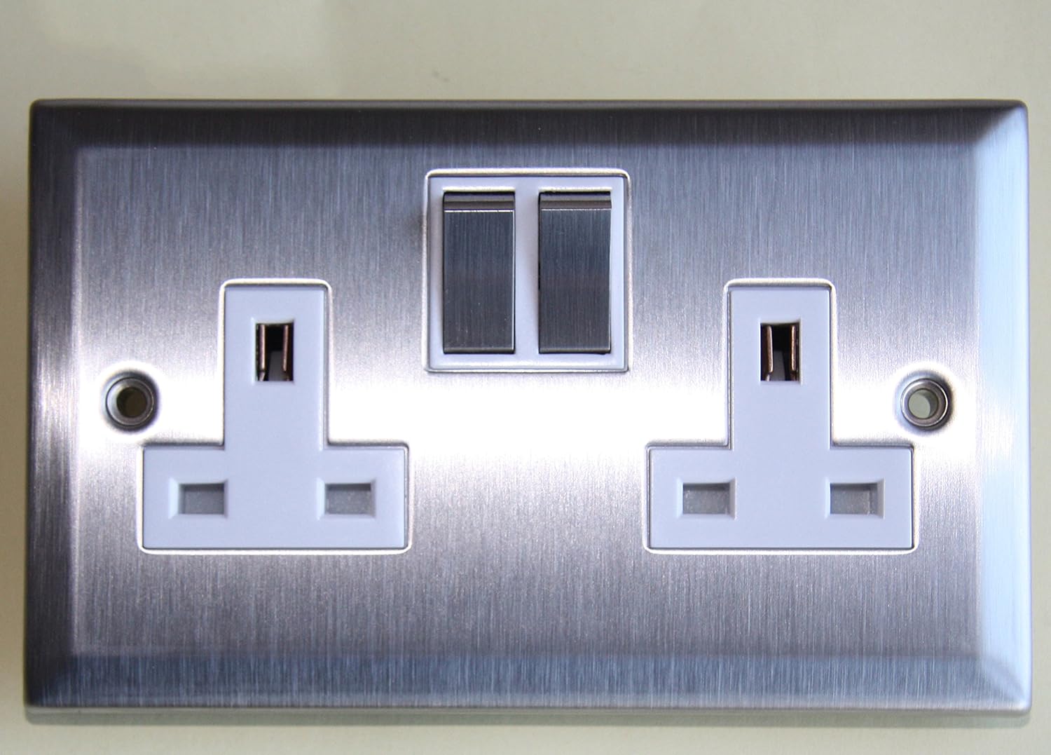 Get Decor Range 13a Twin Brushed Stainless Steel Socket Matching