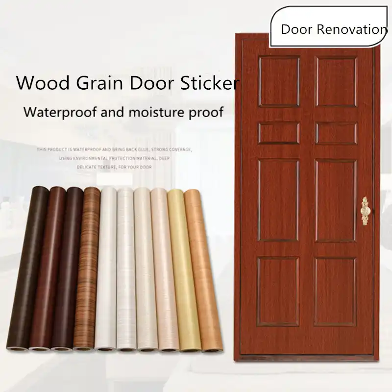 Wood Grain Door Sticker Waterproof Adhesive Wallpaper Wooden Door