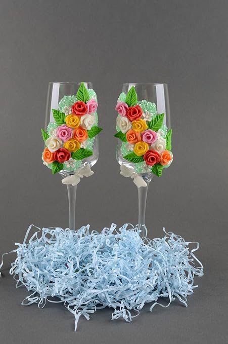 Amazon Com Decorated Wine Glasses 200 Ml Wedding Decor Handmade