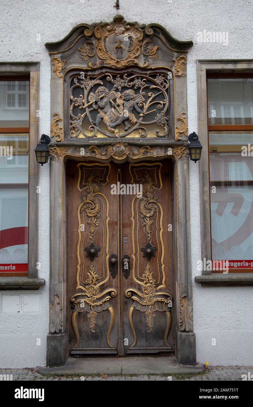 Highly Decorative Front Door On A House In Gdansk Poland Stock