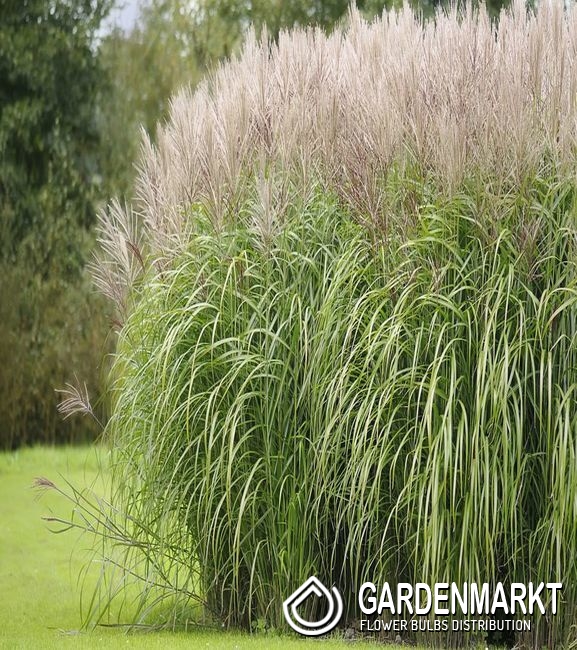 Excellent as a privacy screen or architectural landscape element gracillimus can grow to be 8 tall and 5 wide. It forms a tall rounded mound of thin variegated foliage topped by feathery copper blooms in late summer to mid autumn. To prevent self sowing snip seed plumes before seeds mature.