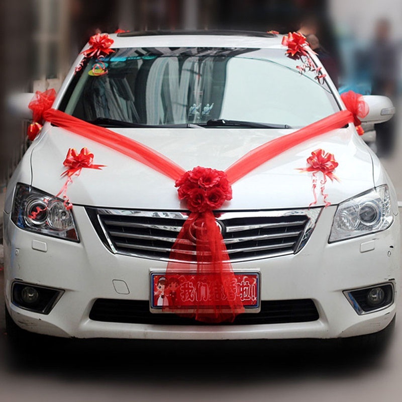 Wedding Car Decor Set Artificial Flower Diy Bowknot Rose Ribbon