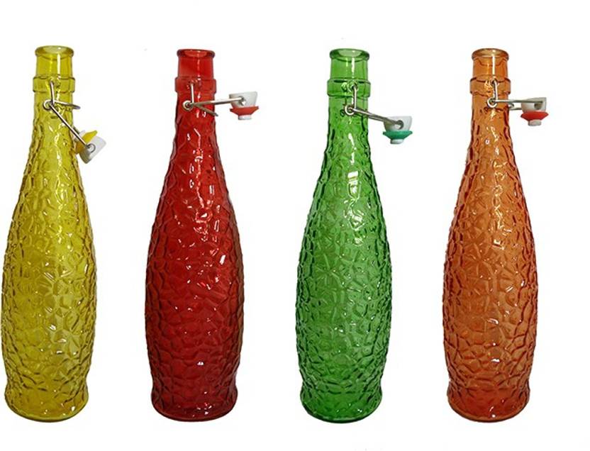 Worldecores Set Of 4 Designet Glass Bottles For Decoration And