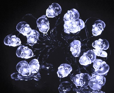 20 Led Halloween Skull Fairy Lights On Black Wire Goth Decorations