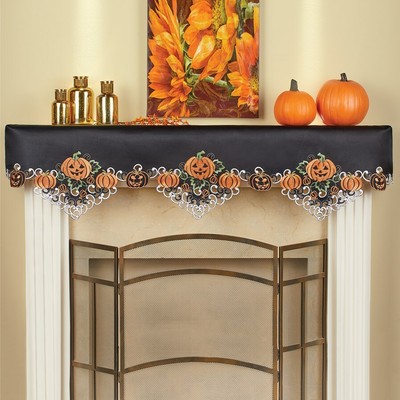 Embroidered Pumpkins Silver Scrolling Halloween Fireplace Mantel