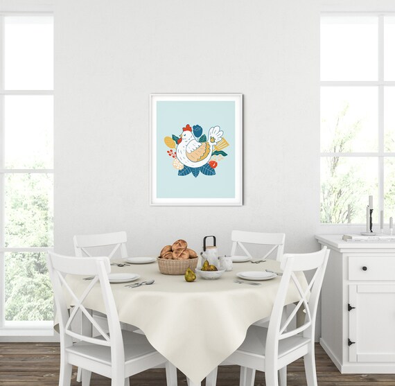 Nordic Kitchen Print Folk Art Print Chicken Decor Etsy
