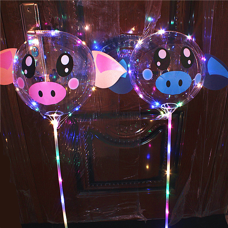 Pig Sticker Led Bobo Ball Luminous Balloon Light Up Transparent