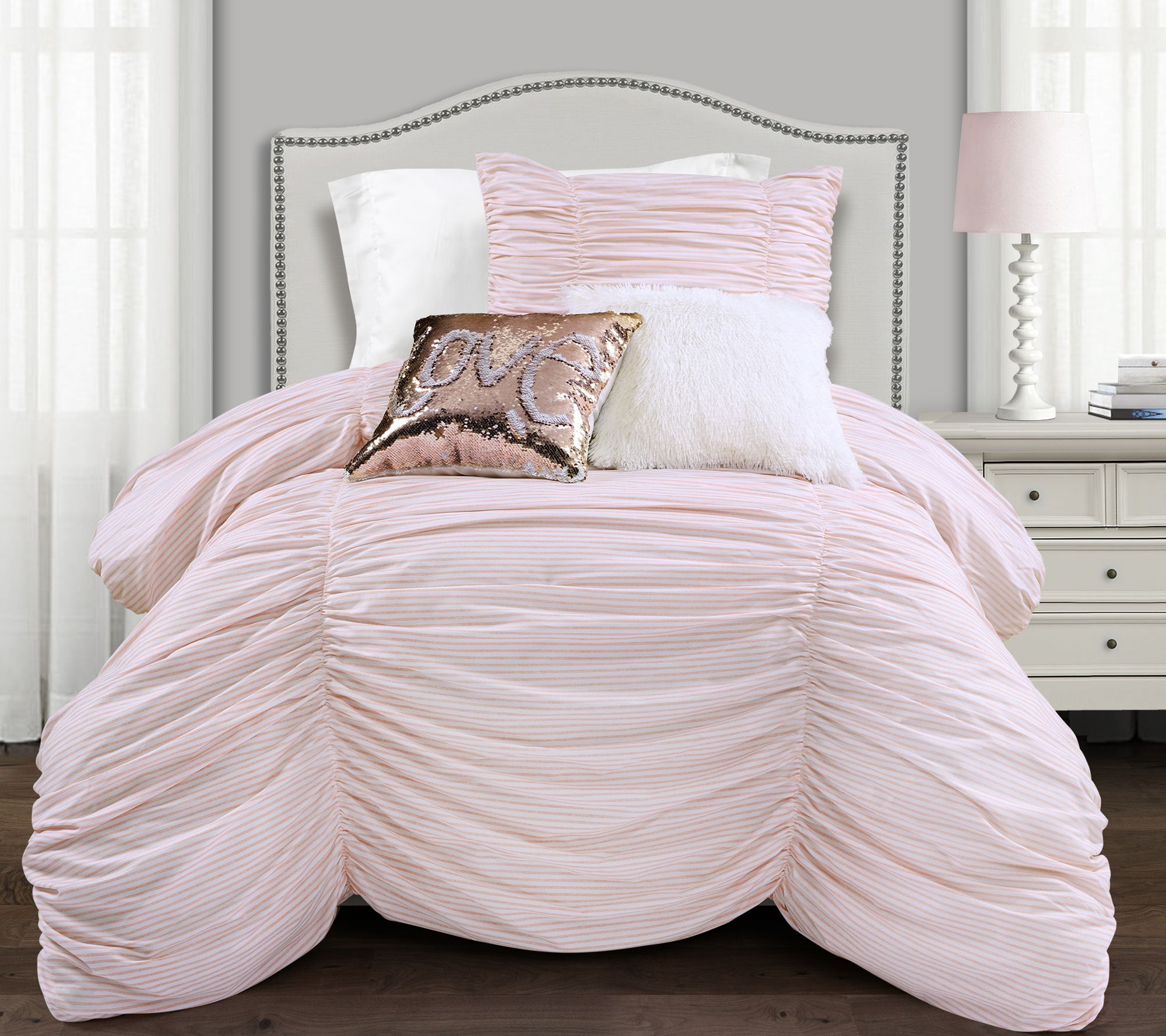 Ruching Ticking Stripe 2 Piece Twin Xl Comforter By Lush Decor