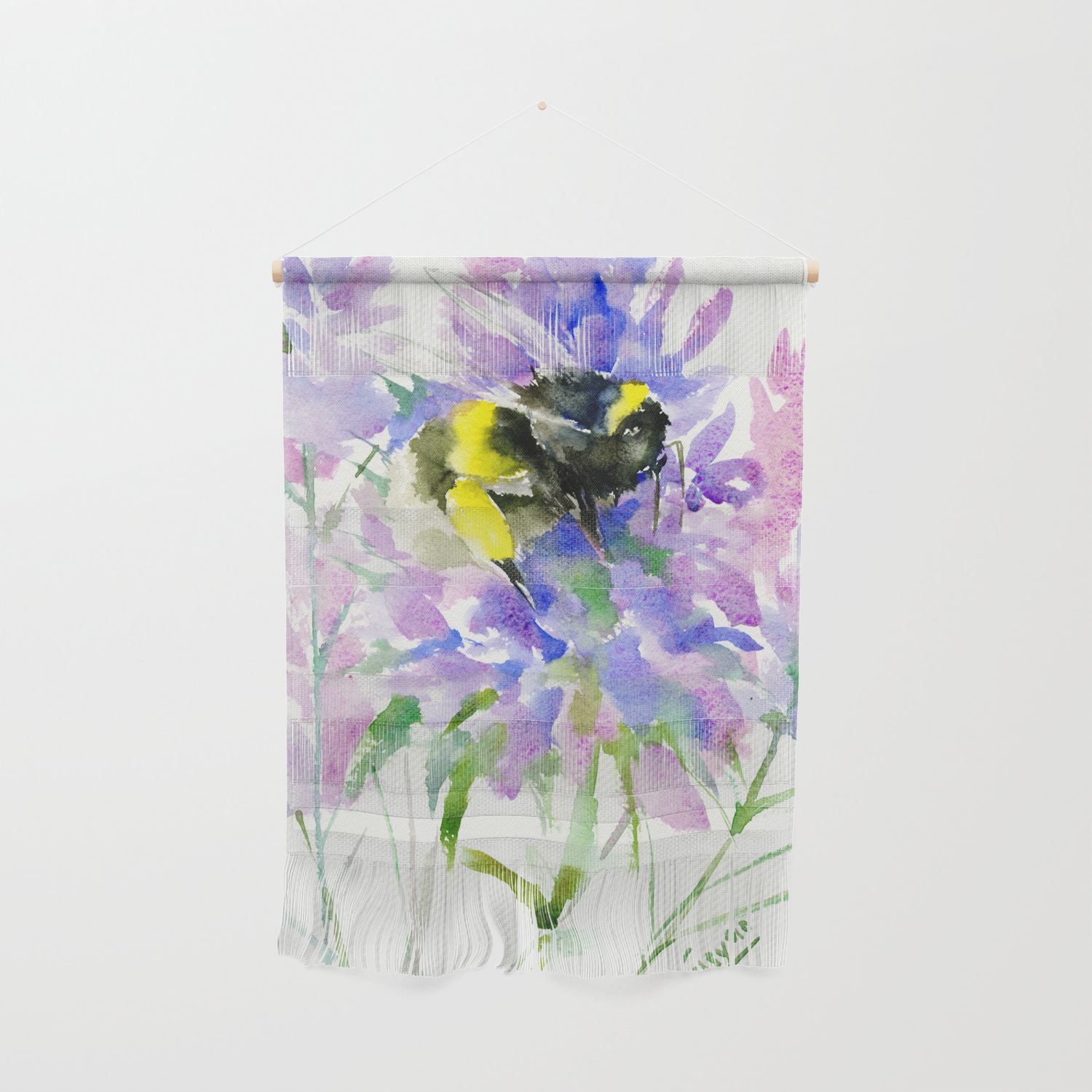 Bumblebee And Lavender Flowers Nature Bee Honey Making Decor Wall