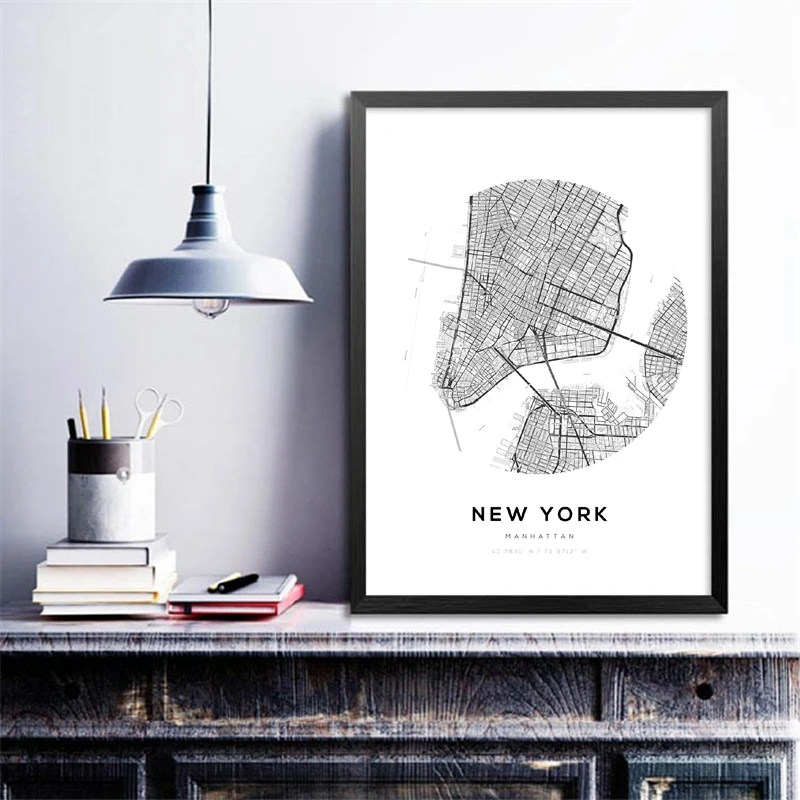 Minimalist Canvas Painting Wall Art Picture City Maps Pairs London