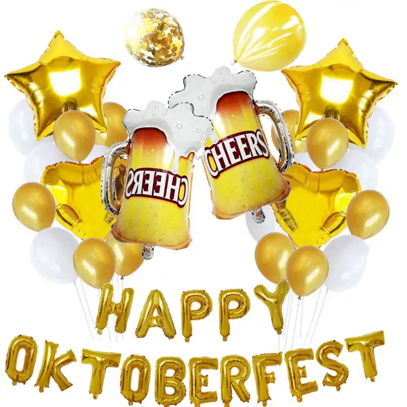 Happy Oktoberfest Balloon Set 16inch Gold Letter Foil Large Glass